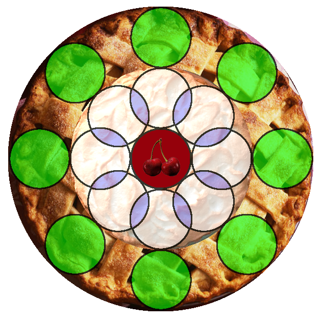 Forrest made a perfectly circular pie of radius 1. Susa randomly placed a perfectly circular ring of pineapple of radius 1/3 on top of the pie, such that none of it hung over the edge. If you slice the pie all the way across at a random angle through the center, what is the probability you will hit the piece of pineapple? (Please state your answer with three decimal points.) 2012 Problem: You have three pies of diameter 9 inches. Without cutting any of the pies a brilliant genie places two of the pies on a circular table, such that the center of mass of each pie is directly over the table. The genie agrees to grant your wish if you can place the third uncut pie ENTIRELY on the table such that it does not overlap with either of the first two pies. How big must the table’s diameter be, such that you are guaranteed to be able to earn your wish? 2011 Problem: As Gabby was both doing math problems and making a pi-day pie last night, she dropped her pencil onto the pie. Her pie is a perfect circle and her pencil is the same length as the radius of the pie. Assuming the pencil is lying flat on top of the pie and that the center of the pencil is over the pie itself (otherwise it wouldn't balance!), what is the probability that part of the pencil extends beyond the edge of the pie? (Express your answer in terms of π!) I think this one is harder than last year's problem, but it can be done without any real calculus, although a calculus concept is sort of required... |