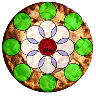 Imagine three pies. The pies are stacked on top of each other like a tiered wedding cake. The apple pie is biggest and on the bottom, there is a banana meringue pie in the middle, and a small cherry pie on top. Let’s play a “game” on these pies involving pennies. First, you flip 8 pennies (showing heads/tails with equal probability) and place them on the apple layer (evenly-spaced around the ring). There are no choices, and the “game” proceeds deterministically from this point. During each round: |