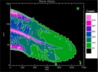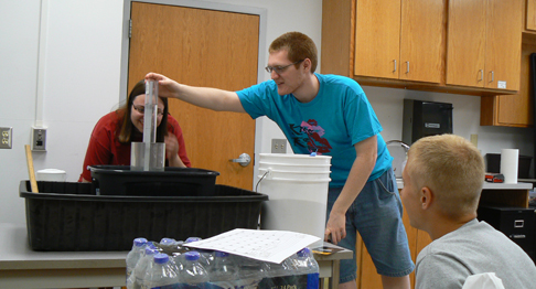 | The purpose of this study is to investigate how the flow of water through a hyporheic system is affected by the spatial distribution of the sediment as well as to build and validate a computer model of our system. We built a custom aquarium-like structure with a divide and two overflow levels, which could be filled with a grid of sands. The study was conducted by gathering time-lapse photos and electrolytic conductivity data as dyed salt water flowed through the physical system. This data compared favorably to simulations created using finite difference calculations in MODFLOW, calculations in MATLAB and visualizations in NetLogo. | |