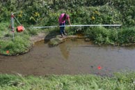 | (1) We mapped the banks using the GPS feature in consumer-grade digital cameras. (2) We built a point-cloud using multi-view stereo software. We developed procedures for two direct measurement methods, (3) cross-sectional and (4) triangulation. We also developed (5) the ‘square method’, which was a novel photogrammetric procedure which involved floating a large wooden square on the creek, photographing the square and banks from as many angles as possible and then using the square to correct for perspective and extract the outline. |